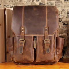 • ROCKCOW Handmade Leather Travel Backpack, Designer Backpacks, School Backpack