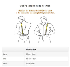 To ensure your suspenders fit comfortably (no too-tight straps or loose sagging), we use a specific measurement method—measure the distance from the front waist to the back waist, following the guide in Picture 3 (this ensures the suspenders align with your body’s natural shape). We offer three sizes to suit different needs: