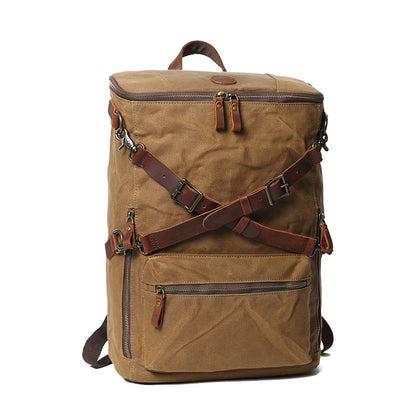 Waxed Canvas Backpack Retro Full Grain Leather And Canvas Travel Backpack Waterproof Outdoor Climbing Backpack