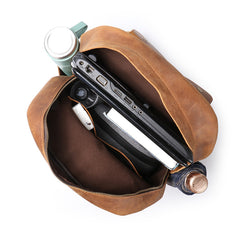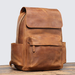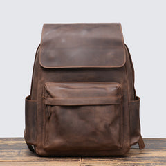 • Crazy Horse Leather Men Backpack Men Full Grain Leather School Backpack Retro Travel Backpack