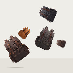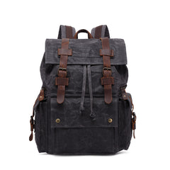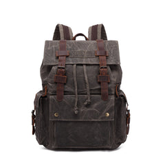 • Outing Waxed Canvas Leather Backpack, Big Capacity Laptop Backpack, Vintage Waterproof Shoulder School Bag 5358 - ROCKCOWLEATHERSTUDIO
