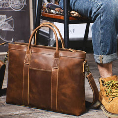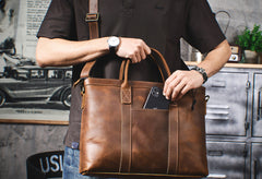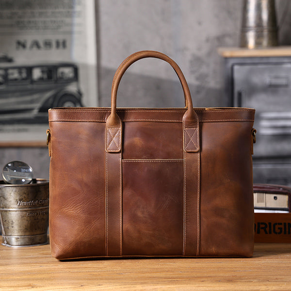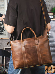 Vintage Leather Briefcase Full Grain Leather Messenger Bag Men Leather Shoulder Bag Leather Laptop Bag Business Handbag