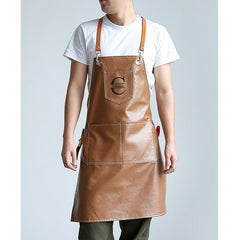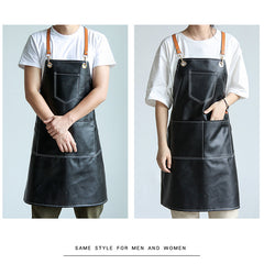 Personalized PU Leather Apron, Waterproof Kitchen Salon Apron for Home, Restaurant, Hairdresser, Nail Artist