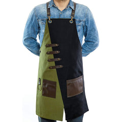 A custom cross-back apron combining style, practicality, and durability for home, kitchen, or workshop use.