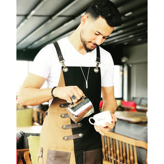 Canvas Apron with Leather Cross-Back Straps, Personalized Waterproof Canvas Apron, Gift for Chef, BBQ Workshop, Art