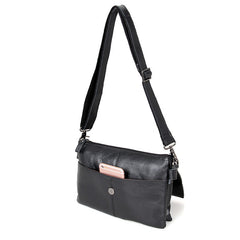 • Rockcow Top Grain Leather Messenger Bags Women's Black Leather Shoulder Bag Clutch Bag C003A - ROCKCOWLEATHERSTUDIO