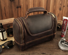 Hand-made Full-Grain Leather Dopp Kit with Laser Engraving