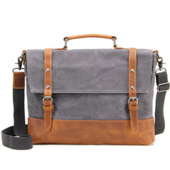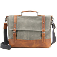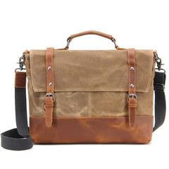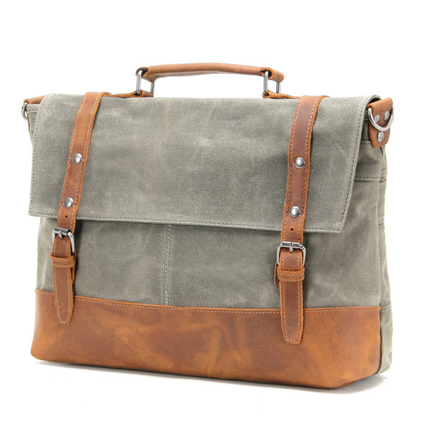 • Canvas Leather Briefcase Vintage Crazy Horse Messenger Bag Crossbody Shoulder Bag Laptop Handbag 2008-1 - ROCKCOWLEATHERSTUDIO