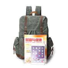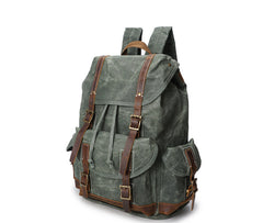 • Crazy Horse Canvas Leather Backpack, Travlling Laptop Backpack, Vintage Waterproof Shoulder Outing Bag 5256 - ROCKCOWLEATHERSTUDIO