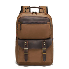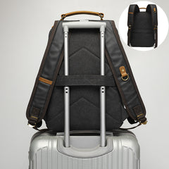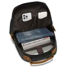 Waterproof Canvas Leather Backpack Large Travel School Bag Mens Laptop Rucksack Unisex Hiking College Backpack