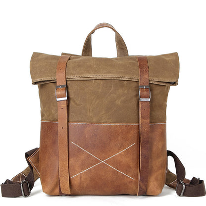 Waxed Canvas Leather Travel Rucksack Canvas With Full Grain Leather Laptop Bag Retro Waterproof Outdoor Hiking Backpack MC9508