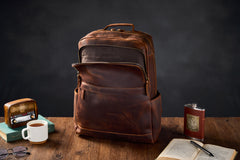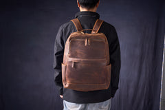 Crazy Horse Leather Backpack Men Laptop Backpack Handmade Travel Backpack MSG7635