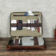 Full Grain Leather Travel Cable Organizer Bag Travel Electronics Accessories Bag Leather Tech Organizer