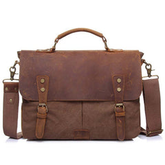 • Handmade Canvas Leather Briefcase Messenger Bag Crossbody Shoulder Bag Laptop Bag 1807 - ROCKCOWLEATHERSTUDIO