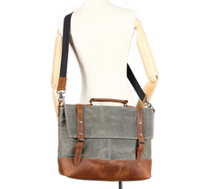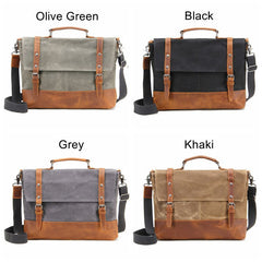 Waterproof Waxed Canvas Messenger Bag, Men's Shoulder Bag, Canvas Bag with Leather Trim